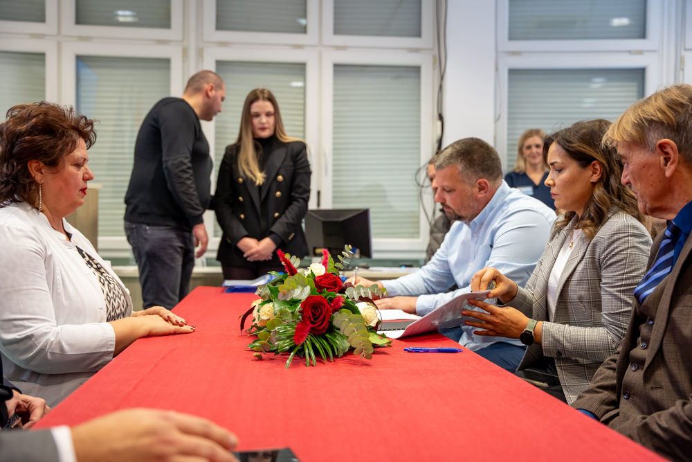 Nakon obraćanja uzvanika uslijedilo je službeno potpisivanje ugovora. Za izvođača radova odabrana je gospićka tvrtka BUBA M d.o.o., u čije je ime ugovor potpisao vlasnik Marijan Marković. Kao podizvođači angažirani su: MATEL d.o.o. za elektroinstalacije, IBS Slađana Božića za fasaderske radove, Totić instalacije d.o.o. za toplinsku podstanicu, radijatore i sustav hlađenja, limarski obrt Jandrić iz Korenice te Termomonting d.o.o. za radove na kotlovnici. Projektantski i stručni nadzor provodi tvrtka Arhingtrade, a koordinator zaštite na radu je NATILLUM d.o.o. iz Vinkovaca, s izvršiteljem dr. sc. Zoranom Pandžom.