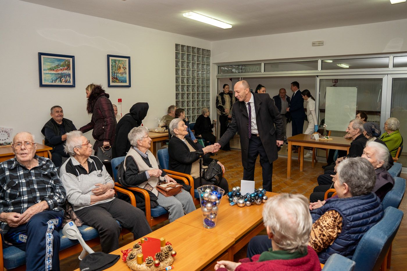 Druženje s korisnicima i djelatnicima Doma proteklo je u ugodnom blagdanskom ozračju, uz razgovor i razmjenu lijepih želja, čime je još jednom iskazana briga i pažnja Ličko-senjske županije prema starijim i nemoćnim sugrađanima.